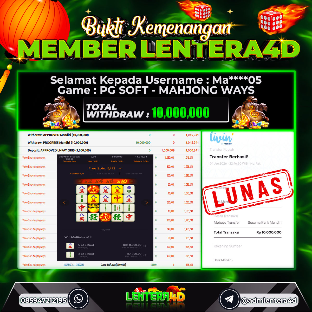 TOTAL KEMENANGAN : Rp. 10.000.000,-