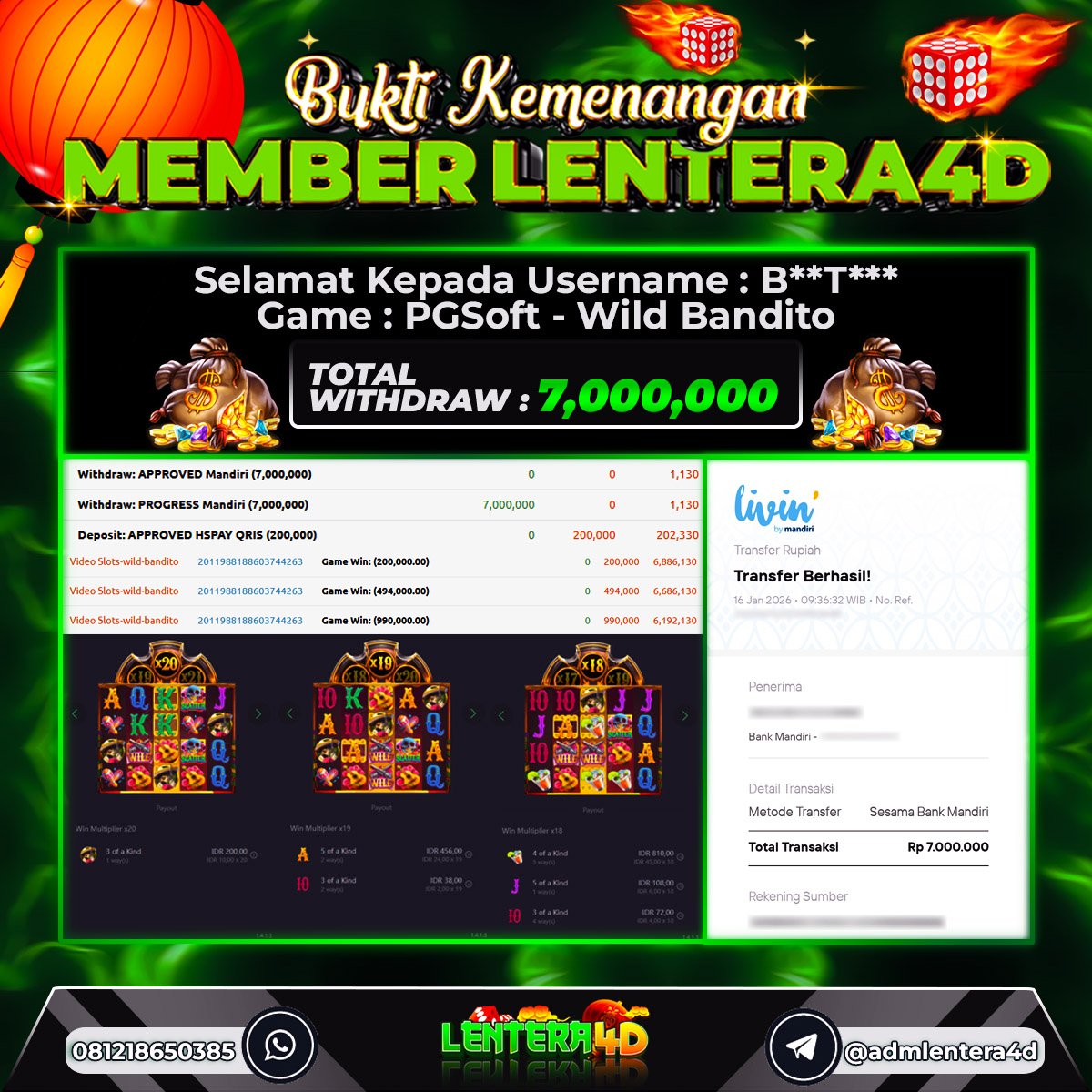 TOTAL KEMENANGAN : Rp. 7.000.000,-
