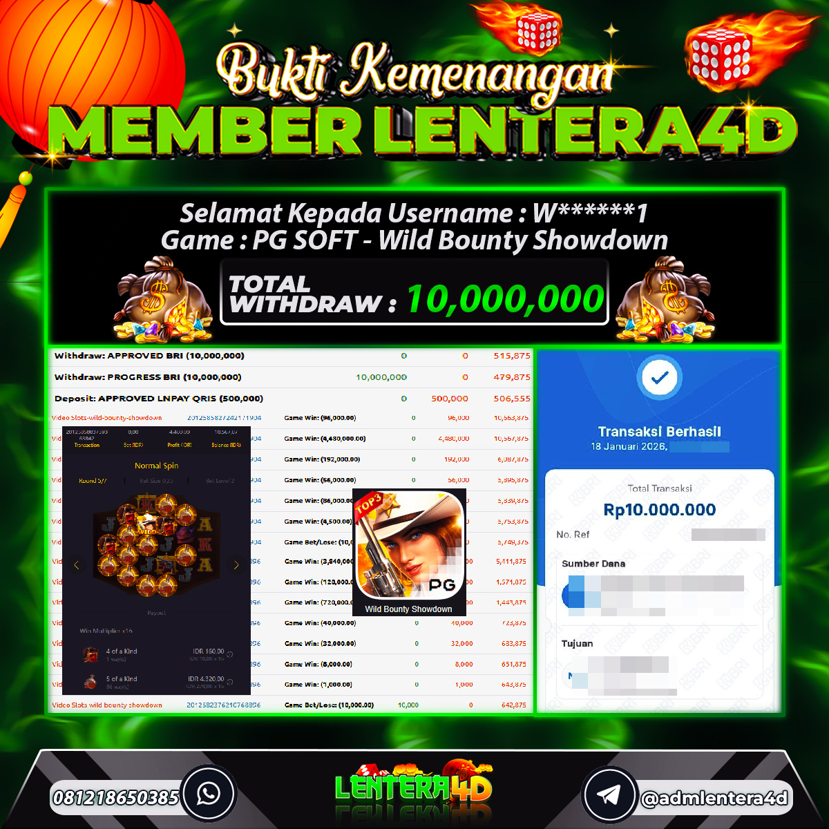 TOTAL KEMENANGAN : Rp. 10.000.000,-